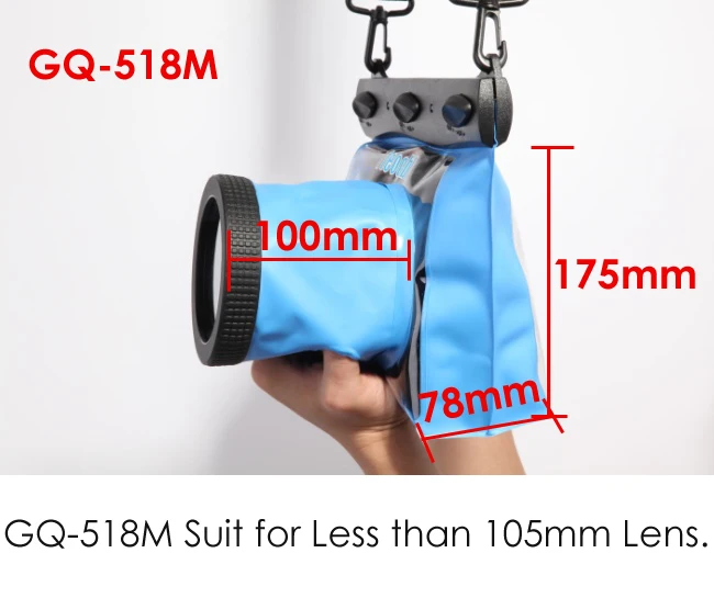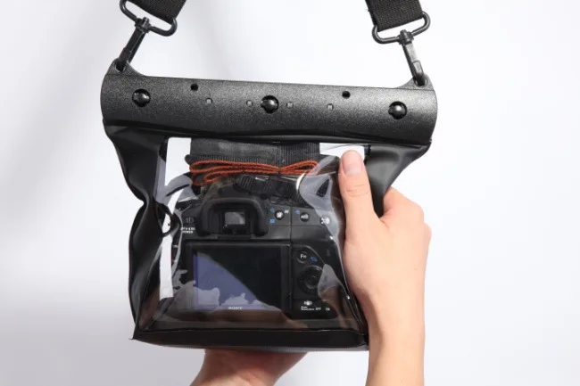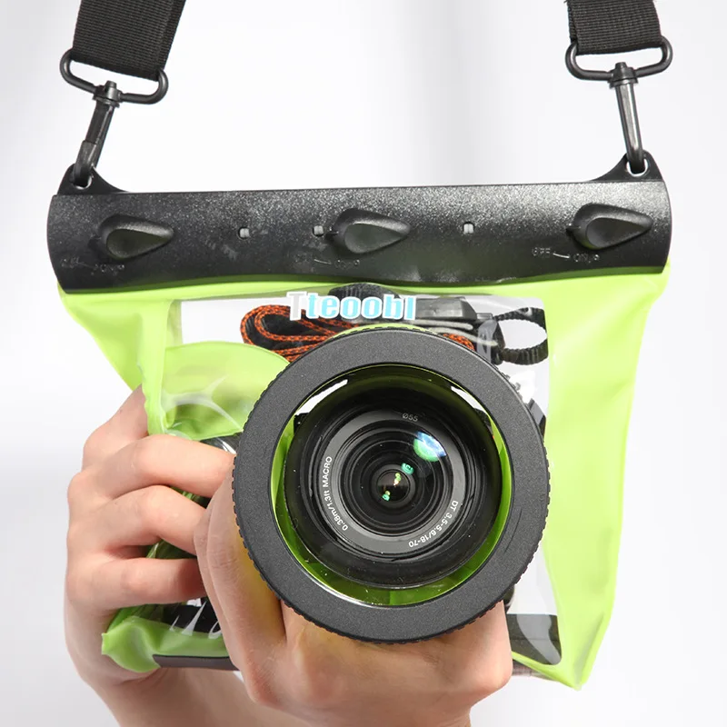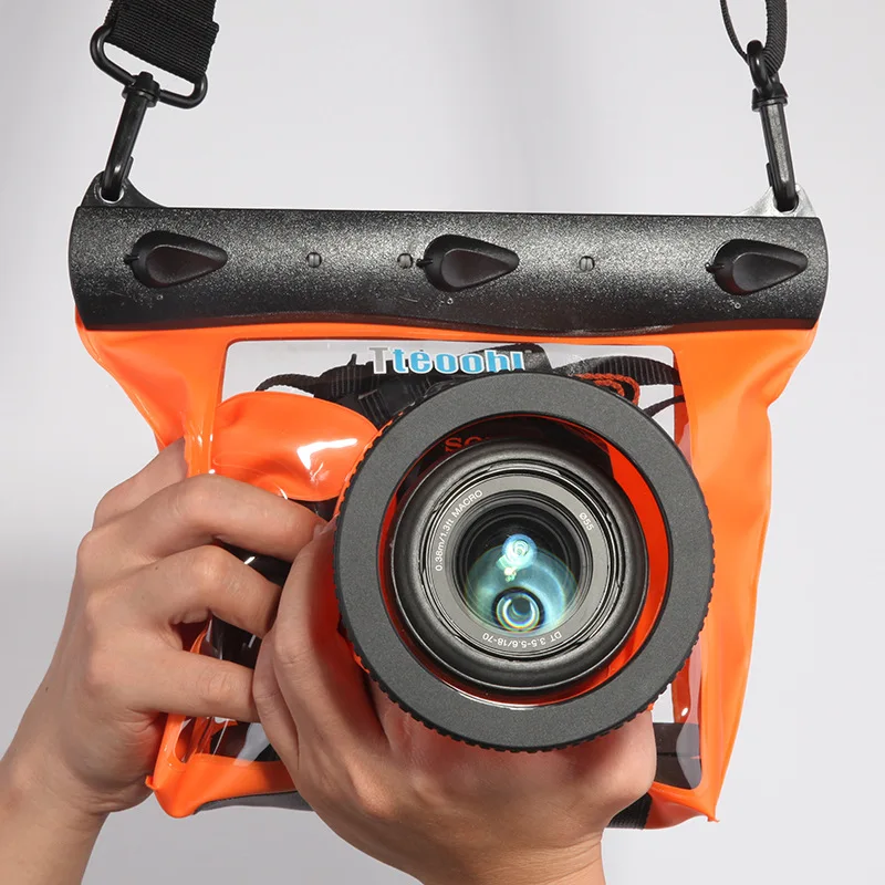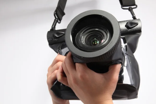 Universal waterproof housing for most DSLR SLR lens cameras. (Note: Lens alone should not be longer than 100mm.)